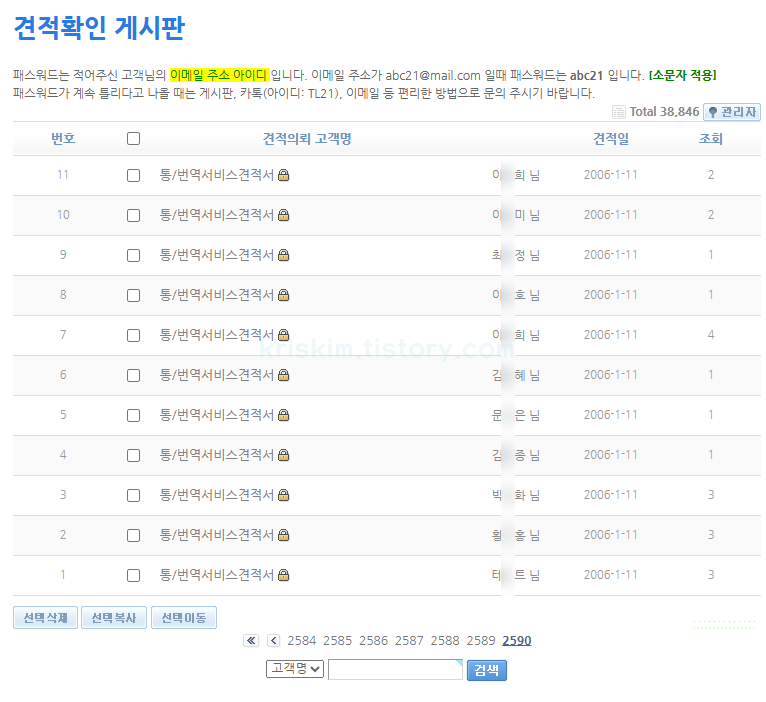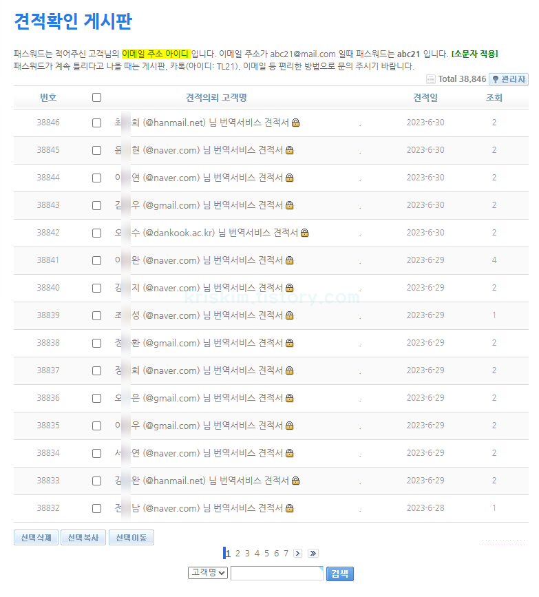 견적확인 게시판