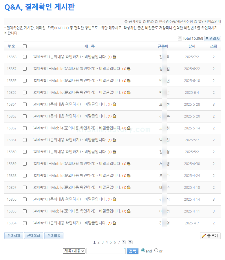 Q&A, 결제확인 게시판